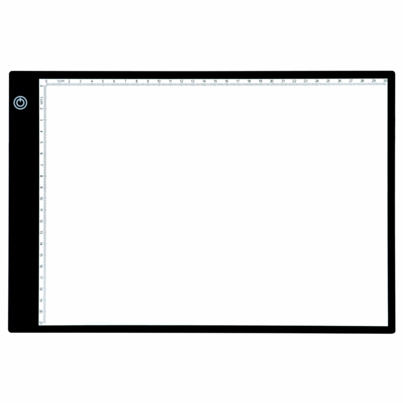 Natural daylight effect. Low heat – low energy. Touch sensitive light controls. Dimmer switch with 3 settings. USB or mains operated (2m cable included). Constant light across the whole panel. Non-slip feet. Lightweight. 1450 lumen. Bulb last circa 50,000 hours. Overall size: 346 x 234 x 5mm. Lighting area: 310 x 220mm.