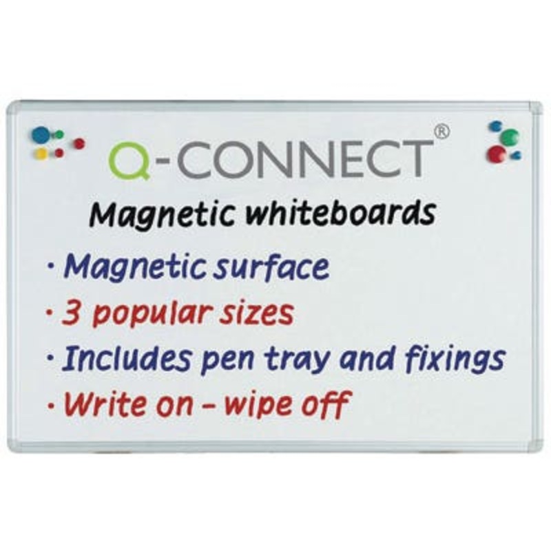 Q-Connect 1800 x 1200mm Magentic Whiteboard Brand:Q-Connect Manufacturer Part Number:KF01081 Features & Benefits: Magnetic whiteboard for use with drywipe markers Coated steel surface Use magnets to affix paper Slim anodised aluminium frame Easy installati