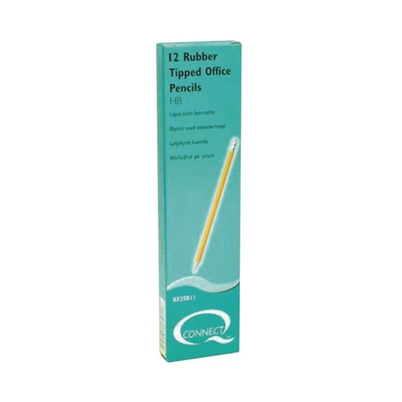 HB Rubber Tipped Brand:Q-Connect Manufacturer Part Number:KF25011 Pack Quantity:12 Features & Benefits: Available with or without a rubber tip Popular HB grade gives smudge free lines Hexagonal burnished barrel for comfortable writing