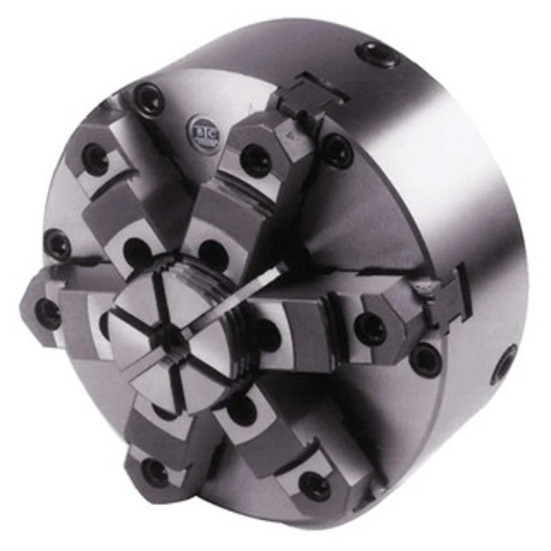QU Industrial Zero Set 6-Jaw Self-Centering Plain Back Scroll Lathe Chuck 1126R, 12" dia. Semi-Steel Body Chucks set to "zero" with use of fine adjustment screws 0.0005" T.I.R. repeatability on duplicate parts Scroll and jaws made of high alloy steel 2 pie