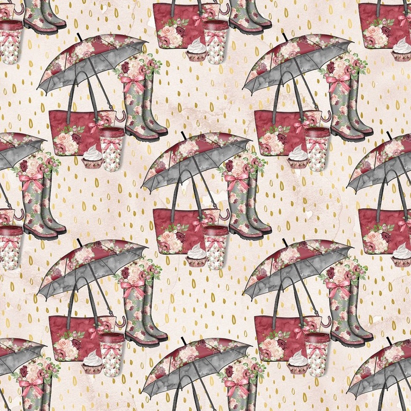 The Gold Rain Romance Main Fabric is part of the Rain Romance Fabric Collection printed by Sew Creative Fabrics. Digitally Printed on 100% cotton.
