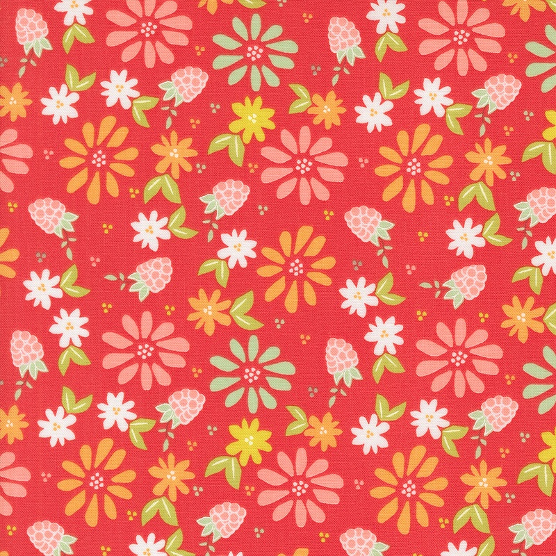Raspberry Summer evokes memories of warmer months, when vibrant blooms and colors abound in nature. With whimsical florals, pretty paisleys, small and medium scale prints, and a delightful Dresden cheater, this collection offers an immense array of options for quilting and sewing.