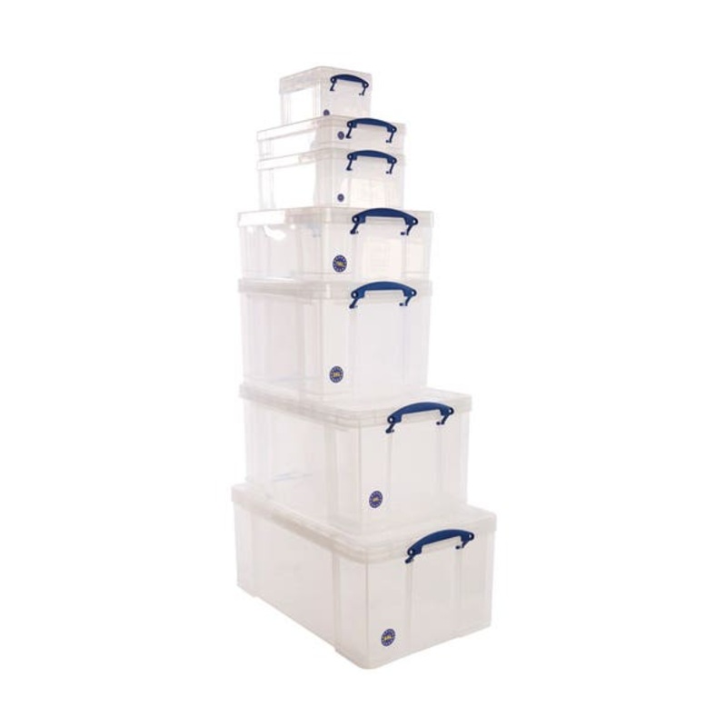 Translucent plastic storage boxes used in warehouses, shops and offices, Manufactured from robust polypropylene, Lid secured with snap lock handles. Brand:Really Useful Box Manufacturer Part Number:RU18C Features & Benefits:Popular translucent plastic stor