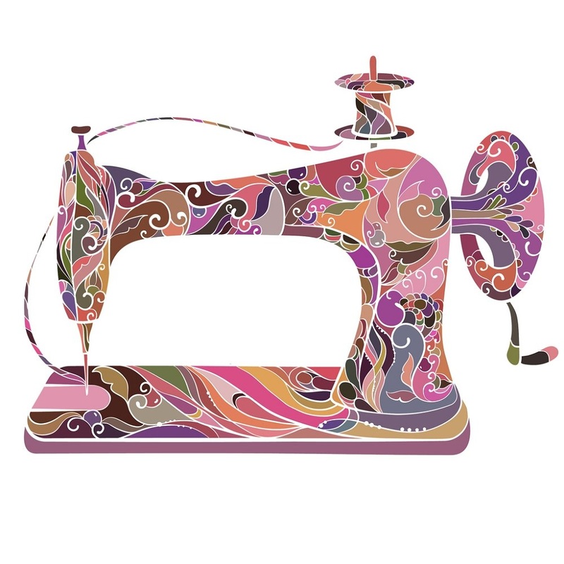 Retro Sewing Machine Fabric Panel – Pastel Quilting Cotton 4.5 Inches by 4.5 Inches