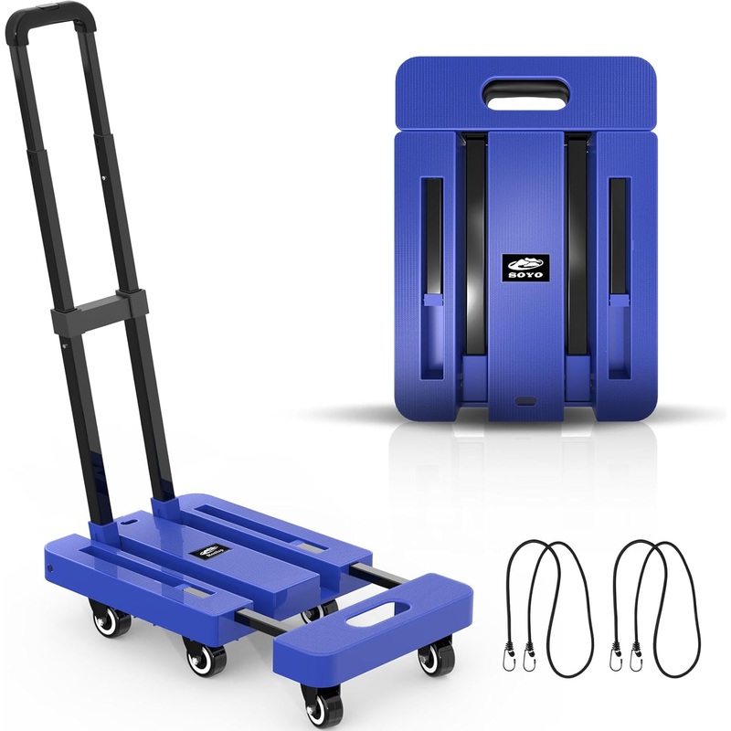 Ronlap Folding Hand Truck, Foldable Dolly Cart for Moving, 500lbs Heavy Duty Luggage Cart, Portable Platform Cart Collapsible Dolly with 6 Wheels & 2 Ropes for Travel House Office Moving, Blue