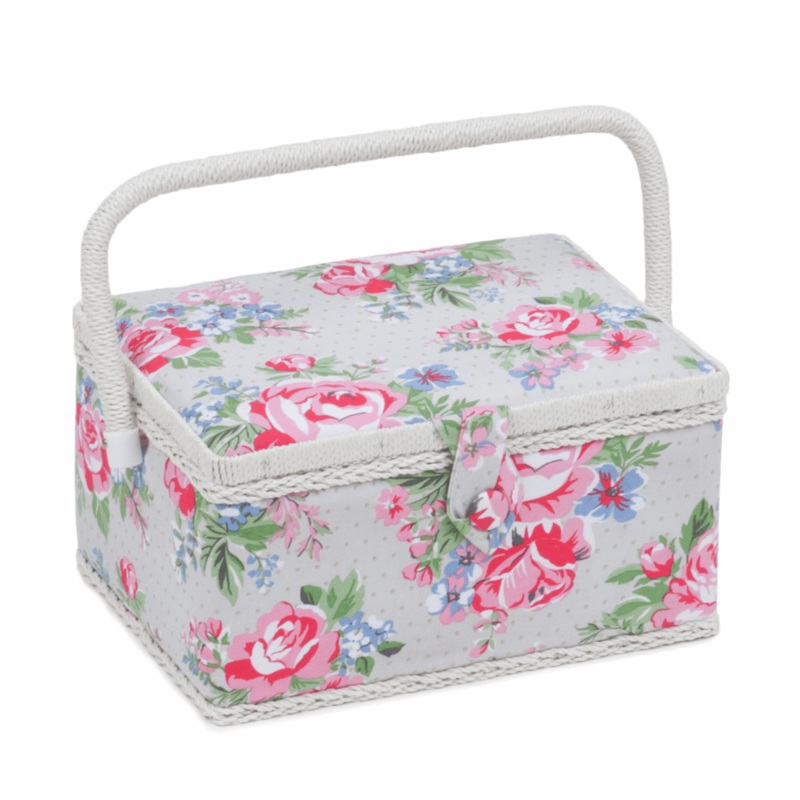 Medium-sized sewing box made from 100% cotton fabric. Hard plastic internal tray with compartments for sewing notions. Internal pocket and pincushion inside lid. Spot clean only.D/W/H: 19 x 26 x 14.5cm.