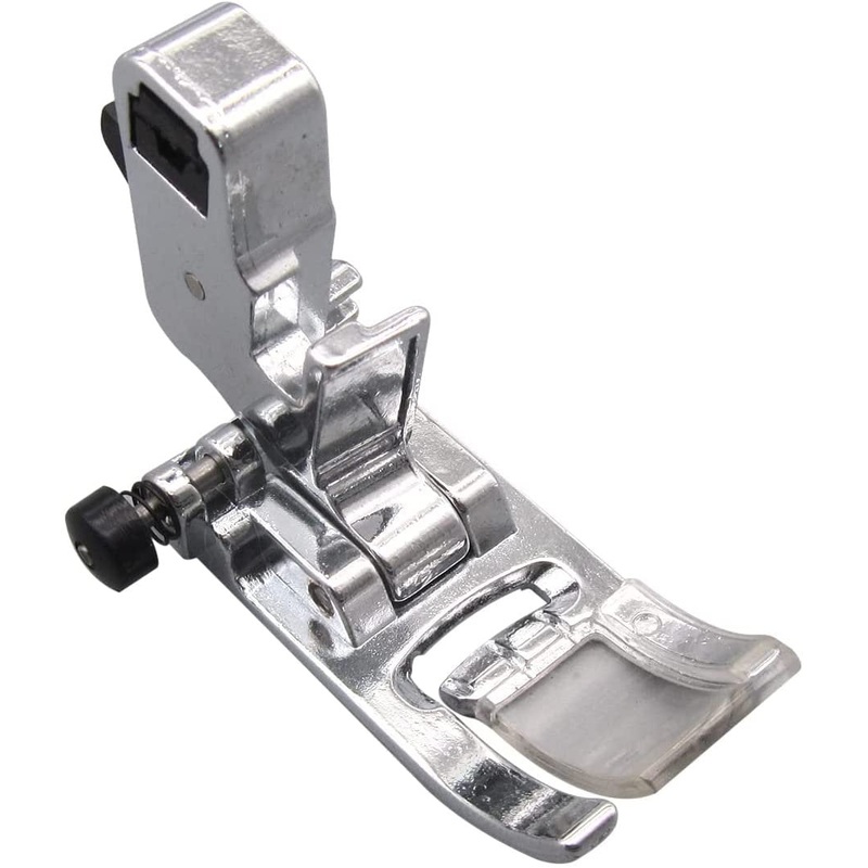 The zig zag foot with ankle set has a snap on foot for sewing over rises at the beginning of or in the body of your fabric. Simply tilt the foot and pull the button to set the foot. When a rise is encountered, the foot automatically releases on it’s downward slope. No more getting stuck at a rise or uneven stitches on the down side! This is also a great item to have on hand as a replacement for a lost or damaged ankle.