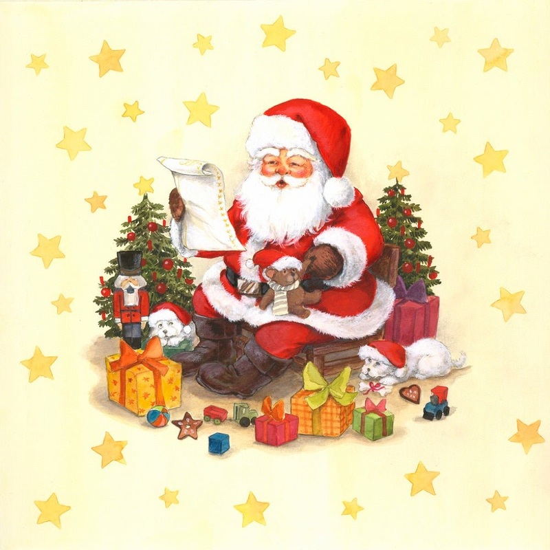 Santa Claus Reading a Christmas Letter Fabric Panel Quilting Cotton 4.5 Inches by 4.5 Inches