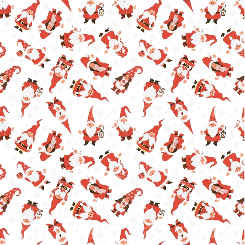 The White Scattered Santa Claus Gnomes Fabric is part of the Santa Gnomes Fabric Collection printed by Sew Creative Fabrics. Digitally Printed on 100% cotton.