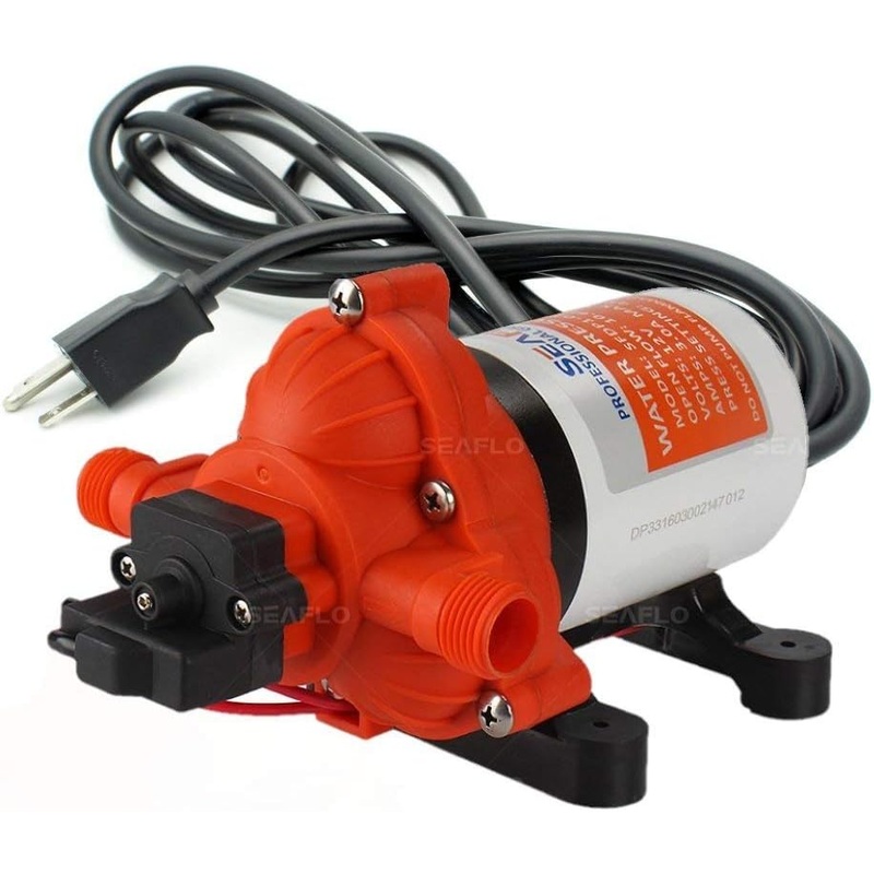 SEAFLO 33-Series Water Pressure Pump 115V AC, 3.3 GPM, 45 PSI, Self Priming, Smart Pressure Switch, UL & CSA Certified, for RV, Caravan, Off-Grid, Marine, and Industrial UseUL 778 & CSA 22.2 CertifiedSelf-Priming up to 6 vertical feet3.3 GPM Flow Capacity, 115V AC Current Draw .75 amps (1.2 Max Amps)Built-in Adjustable Pressure Switch that turns on/off at 45 PSIPlugs into standard wall outlet with pre-installed power plugProduct informationTechnical DetailsBrandSEAFLOColorBlack, WhiteMaterialMetalStyleDiaphragm PumpProduct Dimensions7.98L x 5.11W x 4.84HPower SourceacItem Weight4.2 PoundsMaximum Flow Rate3.3 Gallons Per MinuteMaximum Lifting Height6 FeetVoltage115 VoltsManufacturerSEAFLOUPC647336948127Part NumberSFDPA1-033-045-33Item Weight4.2 poundsItem model numberSFDPA1-033-045-33Is Discontinued By ManufacturerNoSize45 PSIAmperage Capacity1.2 AmpsItem Package Quantity1Special FeaturesPressure switchIncluded Components51S01 Filter, 51F01 FittingBatteries Included?NoBatteries Required?No