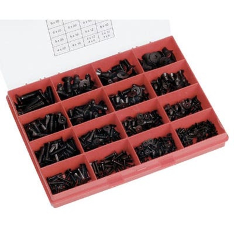 400 Piece Countersink, Head Socket Screws, ISO 10642. Brand:Select Pack Quantity:400 Manufacturer Part Number:29290 Material:Black Finish Additional Information:Black Finish Features & Benefits: ISO 10642