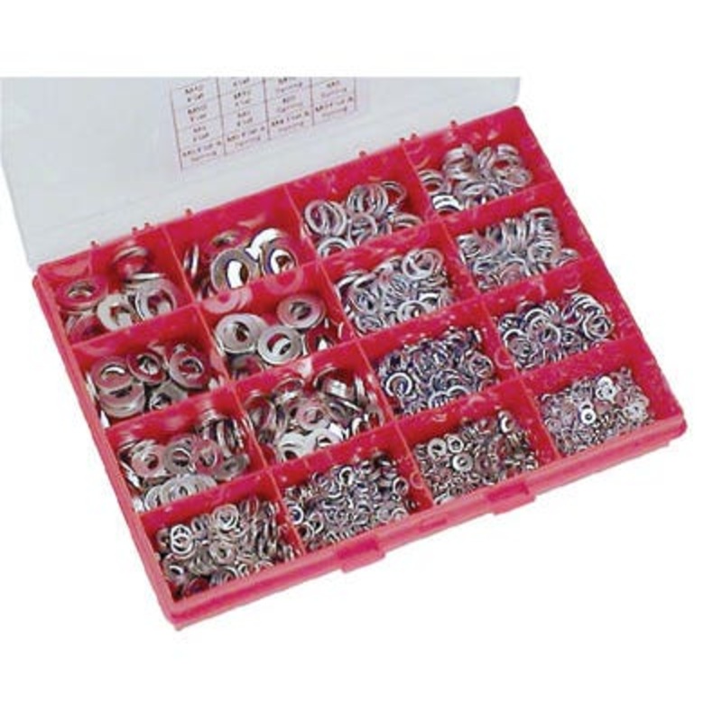 1500 Piece Flat & Spring Washers, Form A flat and square section spring washers. Brand:Select Pack Quantity:1500 Manufacturer Part Number:29309 Material:A2 Stainless Steel Additional Information:A2 Stainless Steel Features & Benefits: Form A flat and squar