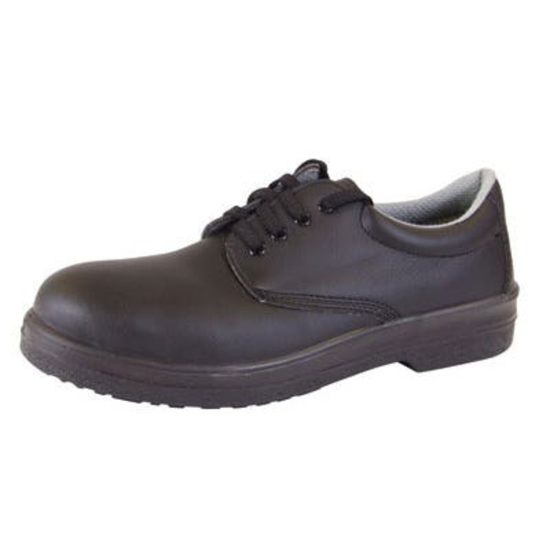 Micro-Fibre Tie Shoes. 200 Joule steel toe cap. Anti-bacterial lining. Shock absorber heel. Anti-slip and anti-static monodensity sole. Machine washable at 40C.