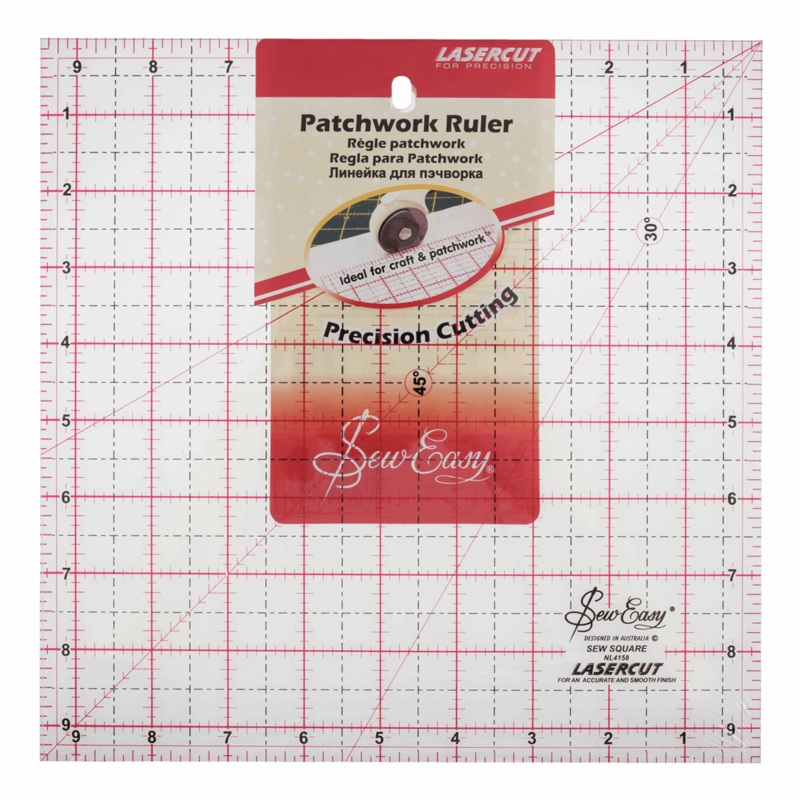 A medium sized ruler, ideal for cutting squares up to 9.5 inches, blocks, half-squares and quarter-square triangles. Useful for home sewing projects and general measurement work they can be used with rotary cutters. Suitable for both left and right hand use.