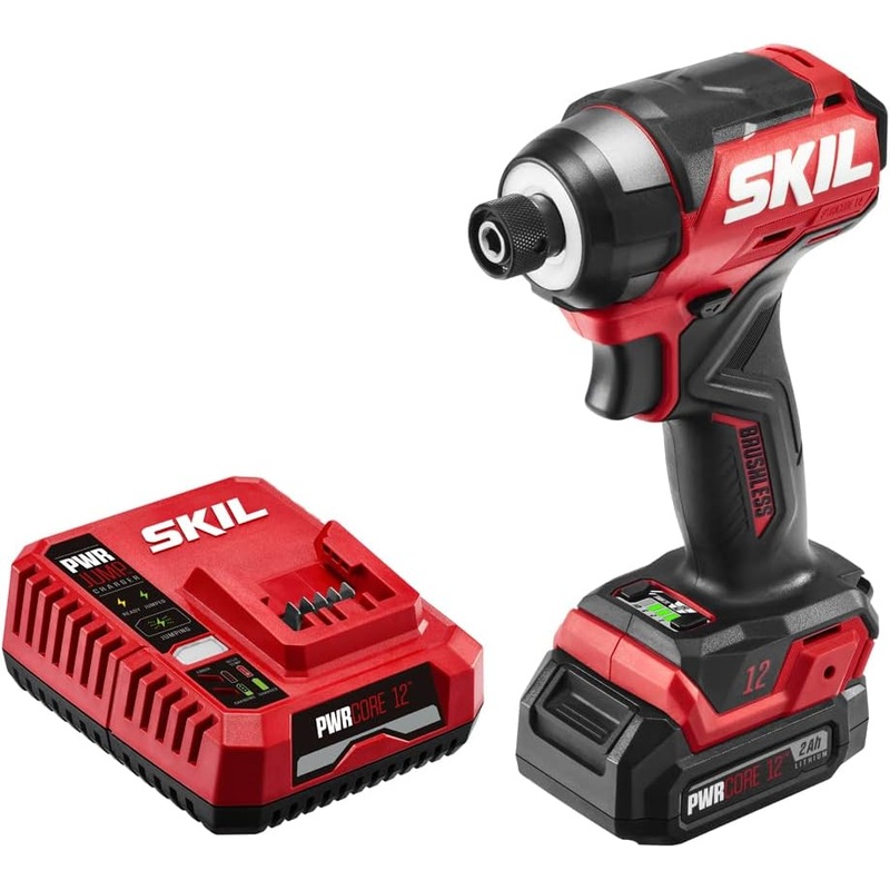 SKIL PWR CORE 12 Brushless 12V 1/4 In. Hex Compact Impact Driver Kit with 3-Speed & Halo Light & One-handed collet Includes 2.0Ah Lithium Batteries and PWR JUMP Charger -ID6744A-10The SKIL PWR CORE 12 Brushless 12V 1/4 Inch Hex Impact Driver packs 1,500 inch-pounds of torque into a compact design that is 1 inch shorter than its previous generation, making it the ideal compact cordless impact driver for working overhead or in hard-to-reach spaces. Its digital brushless motor provides high-performance compact power and durability for extended tool life. Control mode helps eliminate screw cam-out and cross-threading while its three-speed selection allows for precise control at lower speeds to maximum power at higher speeds. Light up your workspace with 5X more light than common LEDs with the Halo Light and enjoy fast and secure one-handed bit insertion and release with the one-handed collet. Complete your projects with confidence with the power and precision of this cordless impact driver. This cordless electric impact driver kit includes the 12V impact driver, a PWR CORE 12 2.0Ah lithium-ion battery with PWR ASSIST mobile charging, a PWR JUMP charger, belt clip, 2-inch PH2 bit, and battery jacket.COMPACT POWERBig power in a compact design for working overhead or in hard-to-reach areas.DIGITAL BRUSHLESS MOTORDelivers high-performance power with up to 1,500 in. lbs of torqueHALO LIGHTProvides 5X more light than common LEDs, reduces shadows, and lights up your entire workspace for up to 10 minutesONE-HANDED COLLETMakes fast and secure bit changes with one hand3-SPEED SELECTIONUses lower speed for precise control and higher speed for maximum powerCONTROL MODEHelps eliminate screw cam-out and cross threadingLONGER RUNTIME & BATTERY LIFEIndustry-leading PWR CORE 12 lithium battery technology wraps each cell with cooling material to keep the battery powering on for 25% longer runtime and 2X battery lifePOWER ON THE GOPlug in to the batterys USB port wherever, whenever with PWR ASSIST mobile chargingCHARGES IN 5 MINUTESPWR JUMP charges the battery from 0% to 25% in just 5 minutes, enough power to blast through up to 100 screws (based on a 2.0Ah battery)