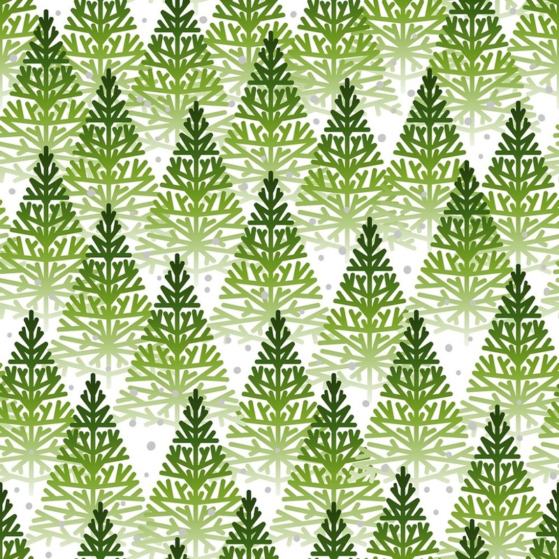 Snowy Christmas Trees Fabric – Green Quilting Cotton Yard – 36″ x 45″