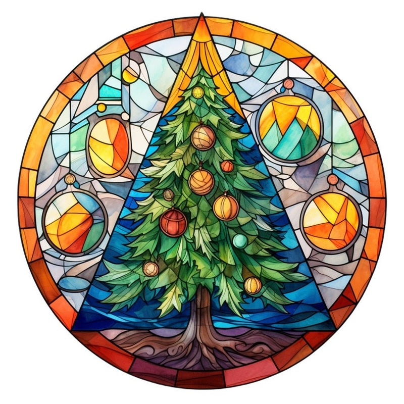 The Stained Glass Abstract Christmas Tree Fabric Panel is part of the Christmas Stained Glass Ornaments Fabric Collection printed by Sew Creative Fabrics. Digitally Printed on 100% cotton. This panel is available in 6 different sizes:4.5 Inches by 4.5 Inch