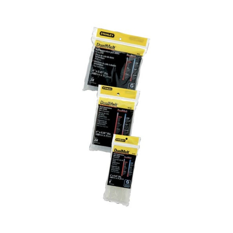 Dual Melt’ for high and low temperature applications. High temp suitable for wood, plastic, metal, glass, ceramics, rubber, leather. Low temp suitable for paper, card, fabric, polystyrene.
