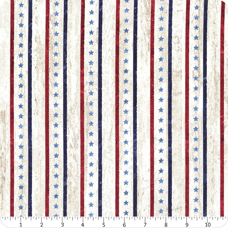 Create a patriotic quilt to celebrate our American hertiage. The Stonehenge Stars and Stripes collection features beautiful blues, reds, and neutrals into flags, stars, stripes, and text. This classic fabric is from Northcott Fabrics and is in support of the Quilts of Valor Foundation. Keep your flag flying with this beautiful Stars & Stripes fabric.