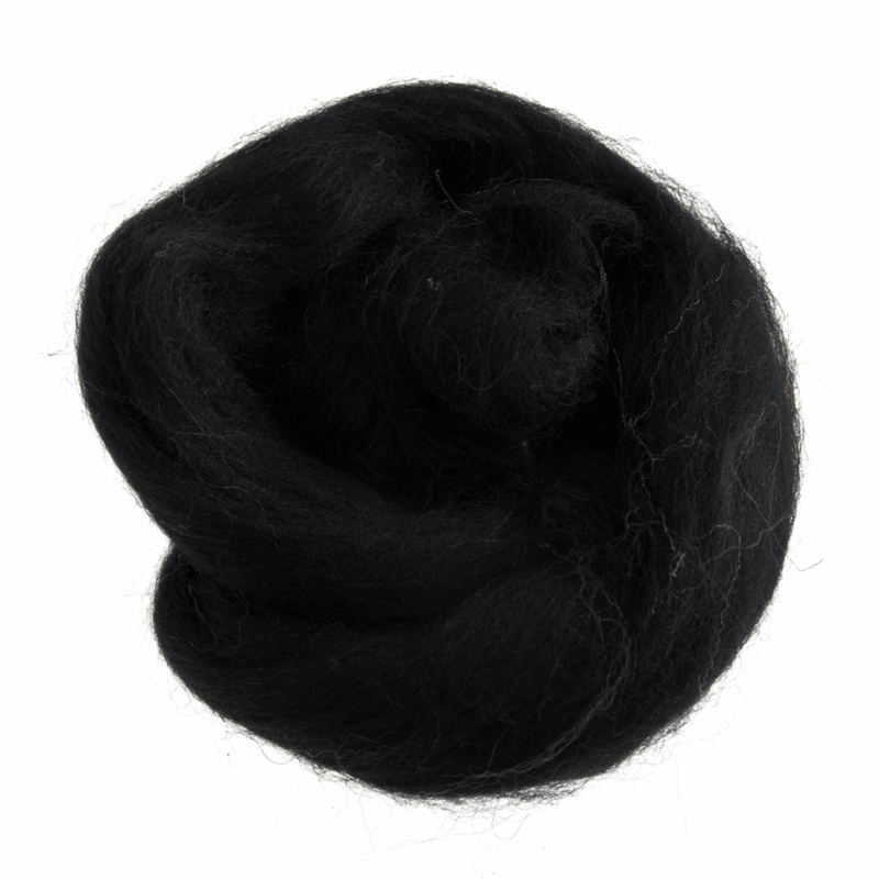 Trimits Black Natural Wool Roving – 50g