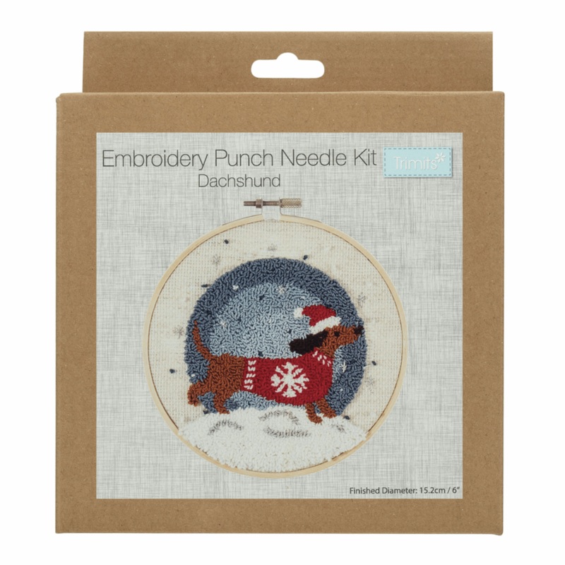 Kit includes everything you need to complete your festive hoop: plastic non-slip hoop, pre-stretched aida, embroidery floss, punch needle, needle threader, instructions.Finished hoop size: (diam) 15.24cm or 6in. Ideal for beginners. Composition: frame is plastic; fabric is polyester/cotton/linen; floss is cotton.