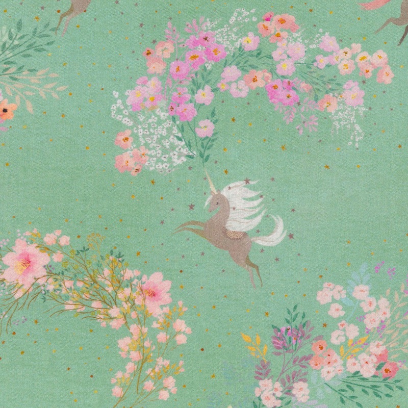 Unicorn Meadow by Sanja Rescek for Robert Kaufman Fabrics.Color: Seafoam Unicorn Dance Flowers | WEL-22415-241100% cotton44" - 45" wideCoordinating fabrics available!All Sales Final.All Fabric is sold in 1/4 yard increments.