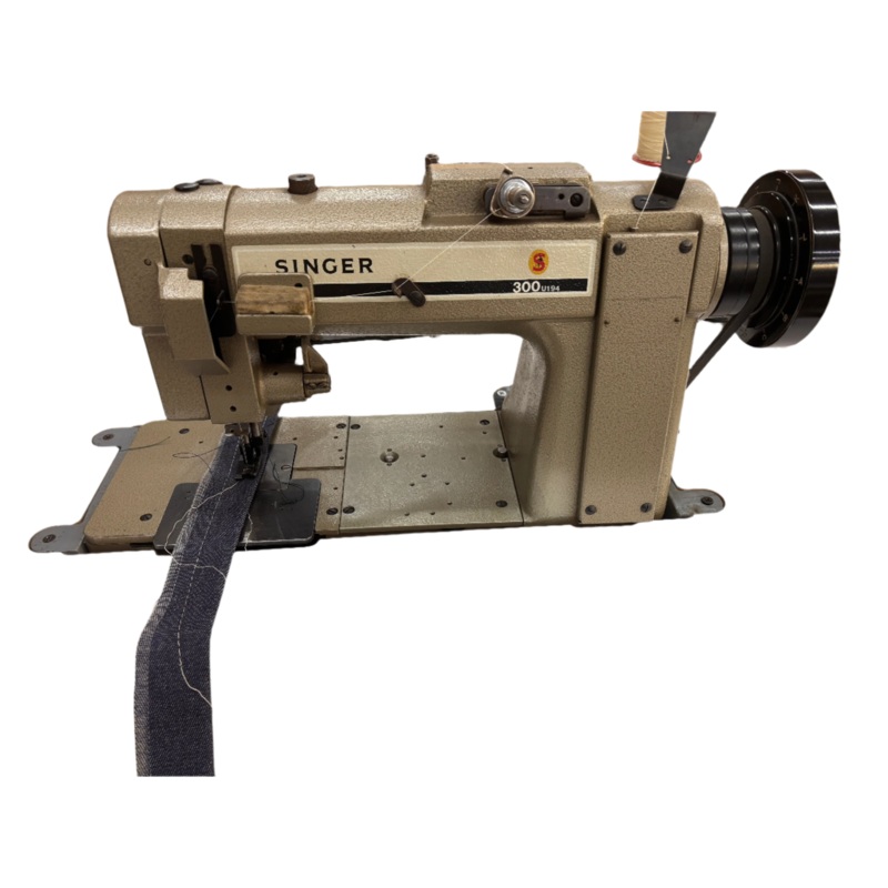 The Singer 300U194 is a single-needle, two-thread double chain-stitch machine featuring compound (unison) feedcombining bottom feed, needle feed, and alternating presser feet. It’s built for medium to heavy materials such as upholstery, mattress binding, automotive interiors, tents, and canvas goods.