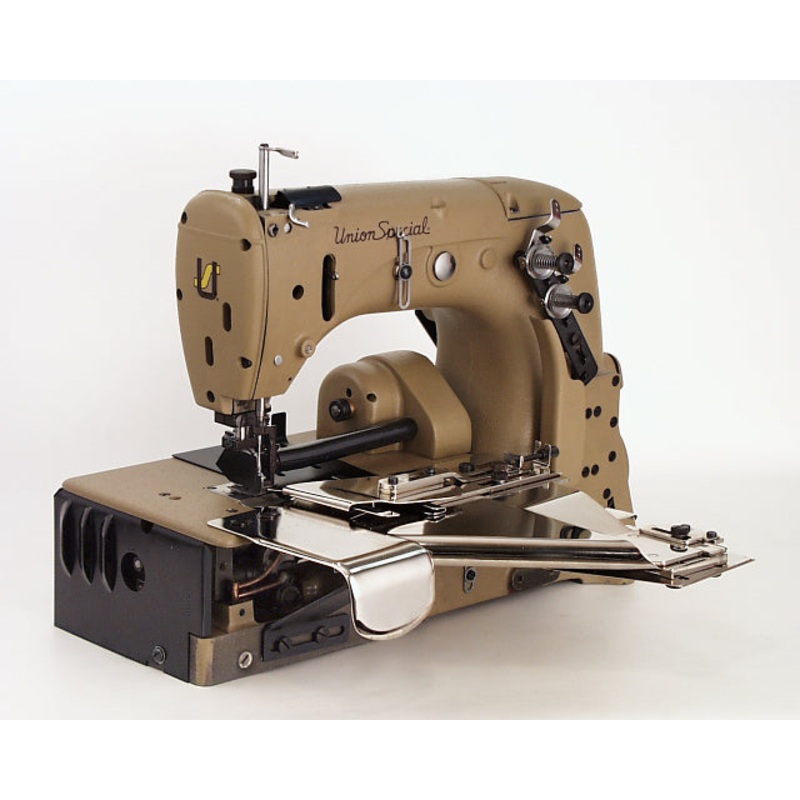 The Union Special53100A (53100 Series) is a high-speed, heavy-duty single-needle flatbed zigzag sewing machine equipped with a closed-coupled puller, making it ideal for applications like garment construction, carpet binding, and waistband sewing