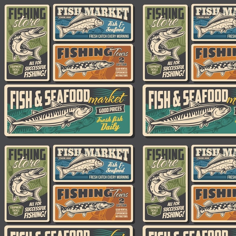 The Multi-Colored Vintage Fishing Store Poster Fabric is part of the Vintage Posters Fabric Collection printed by Sew Creative Fabrics. Digitally Printed on 100% cotton.