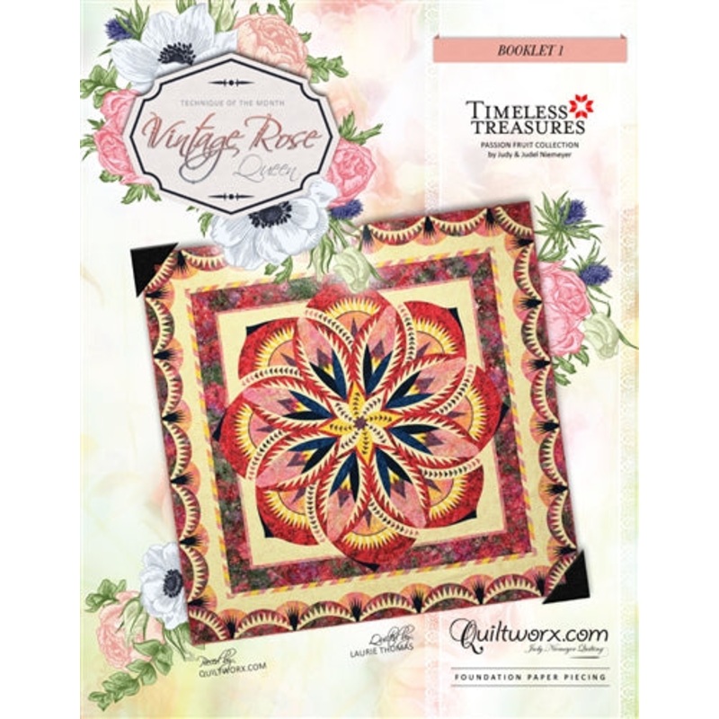 Judy Niemeyer'sVintage Rose Queen pattern finished size is 96" x 96".