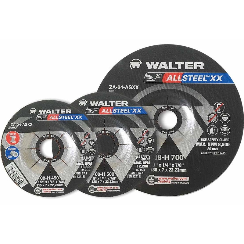Walter ALLSTEEL XX Grinding Wheels are more aggressive and longer lasting than the regularWalter ALLSTEEL Grinding Wheels, these versatile grinding wheels require less pressure to do the same job. ALLSTEEL XX offers the lowest overall cost of grinding when working with stainless steel.