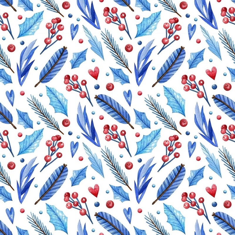 The Watercolor Assorted Winter Plants Fabric is a part of the Watercolor Christmas Stories Fabric Collection printed by Sew Creative Fabrics. Digitally Printed on 100% cotton.