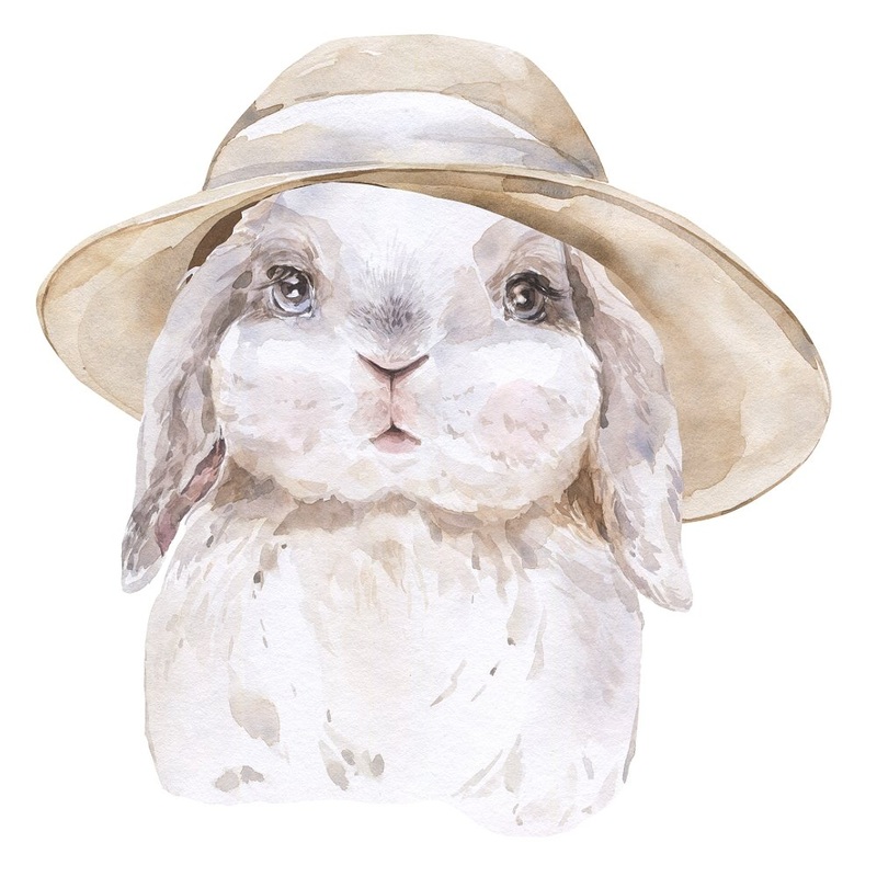 The Watercolor Bunny in Hat Fabric Panel is part of the Fluffy Animals on the Farm Fabric Collection printed by Sewing Parts Online. Digitally Printed on 100% cotton. The fabric panel is available in 6 different sizes:
