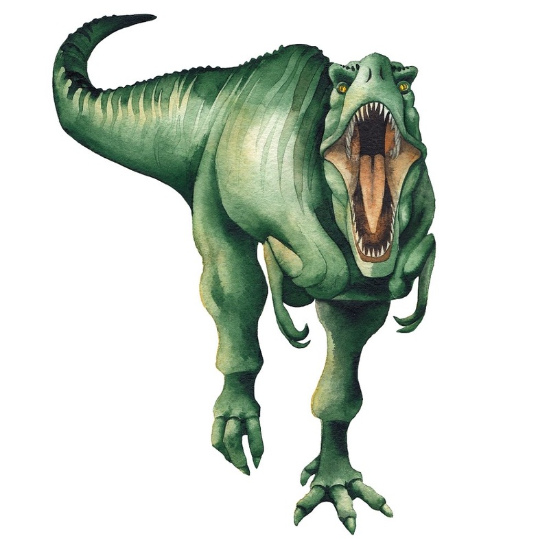 Watercolor Dinosaur T-Rex Front Fabric Panel part of The World of Dinosaurs Fabric Collection printed by Sewing Parts Online. Featuring a Tyrannosaurus Rex. Digitally Printed on 100% cotton. This panel is available in 6 different sizes: