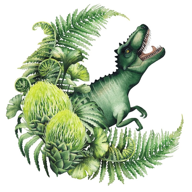 Watercolor Dinosaur Wreath Style 2 Fabric Panel part of The World of Dinosaurs Fabric Collection printed by Sewing Parts Online. Digitally Printed on 100% cotton. This panel is available in 6 different sizes:
