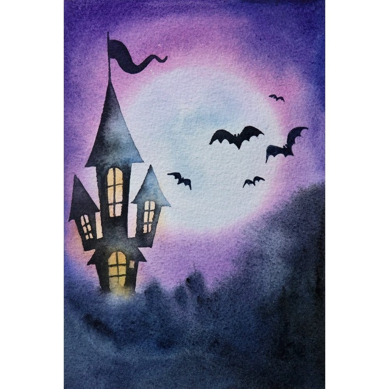 Watercolor Halloween Paintings #3 Fabric Panel Quilting Cotton 9 Inches by 9 Inches