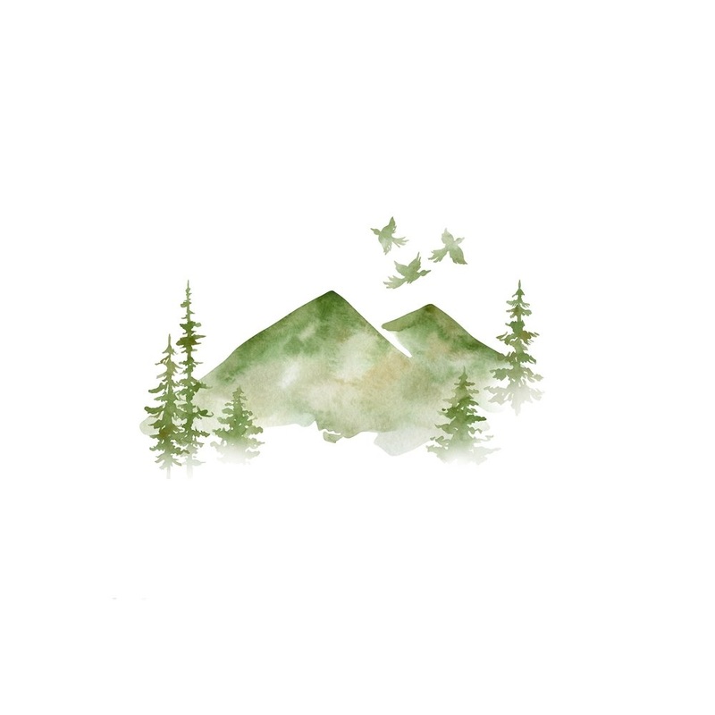 Watercolor Mountain Peaks Fabric Panel – Green Quilting Cotton 4.5 Inches by 4.5 Inches
