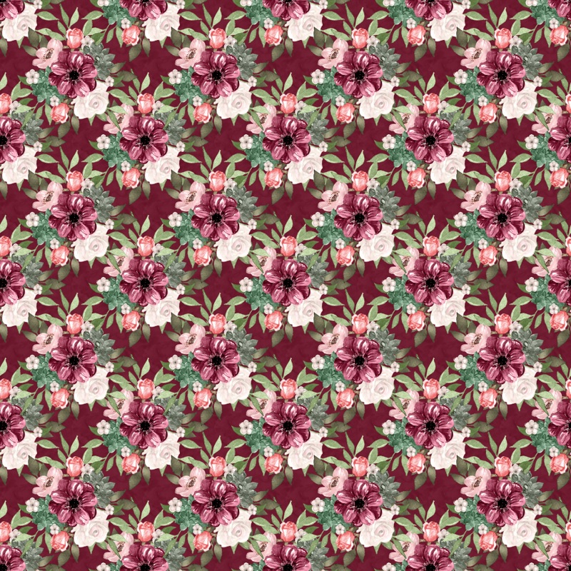 The Burgundy Watercolor Wildflower Clusters Fabric is part of the Champagne & Burgundy Floral Fabric Collection printed by Sew Creative Fabrics. Digitally Printed on 100% cotton.