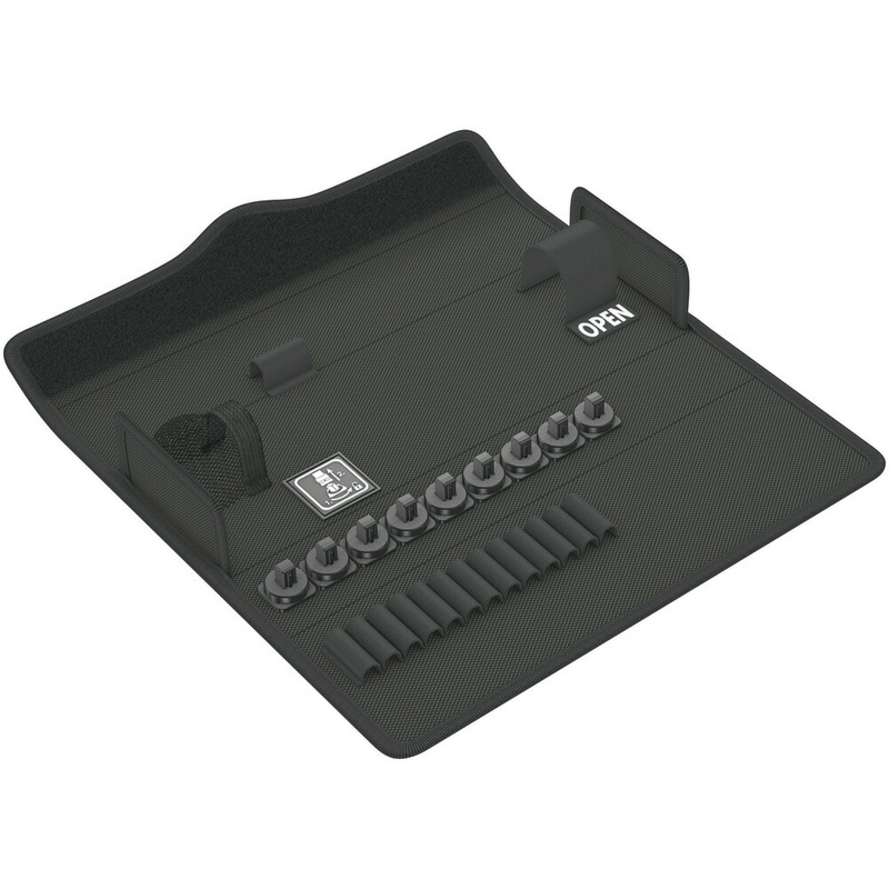 Strong hook and loop fastener system prevents unintentional opening and loss of the tool