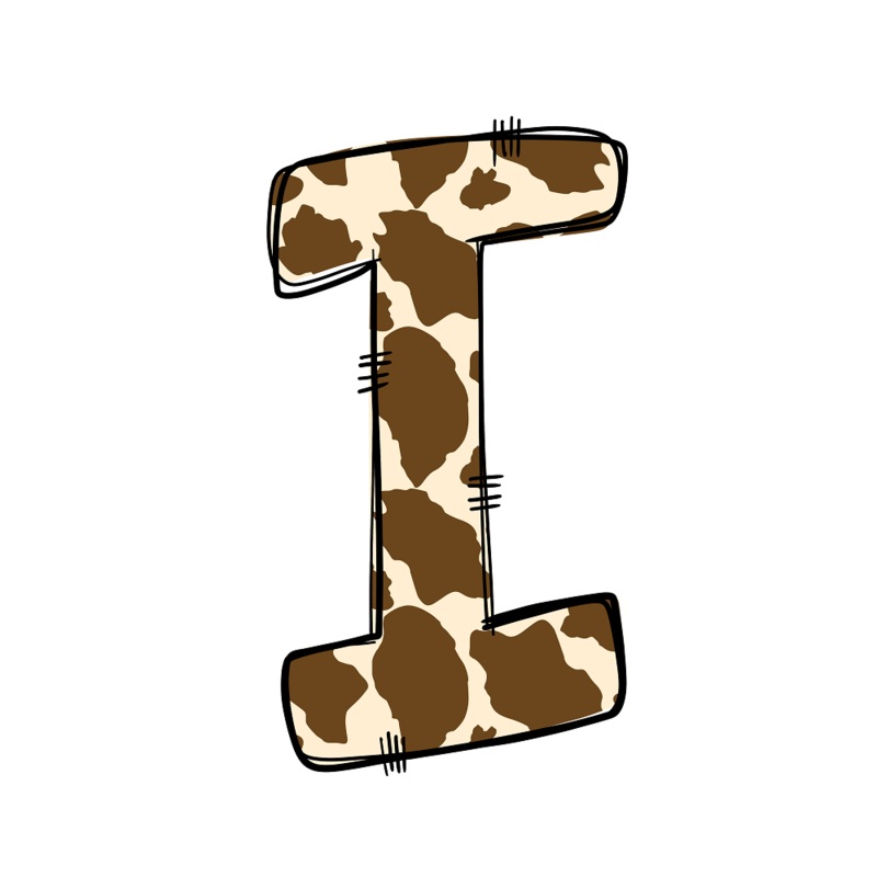 The Western Cowboy ''I'' Cow Print Fabric Panel is a part of the Western Cowboy Alphabet Fabric Collection printed by Sewing Parts Online. Digitally Printed on 100% cotton.This panel is available in 6 different sizes:4.5 Inches by 4.5 Inches9 Inches by 9 I