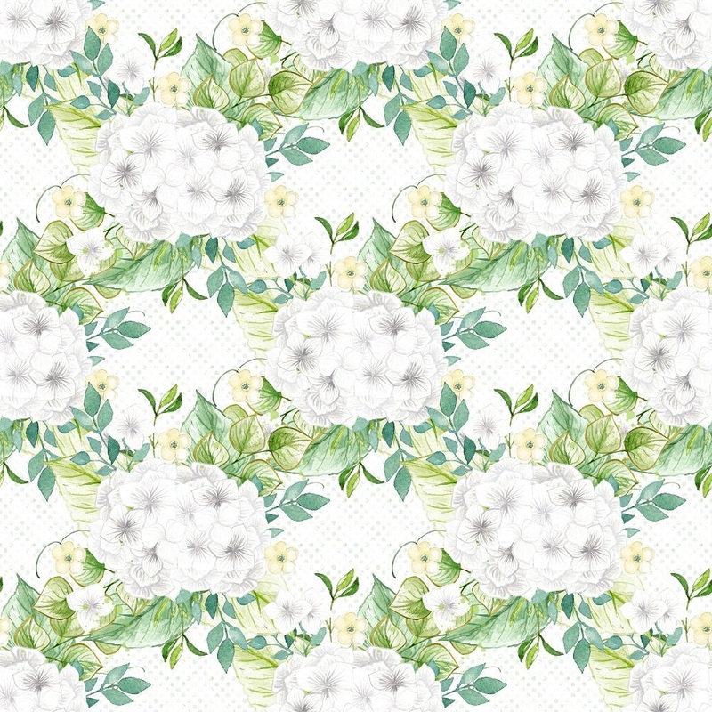 The White Hydrangeas Bouquets on White Dots Fabric is part of the White Hydrangeas Fabric Collection printed by Sew Creative Fabrics. Digitally Printed on 100% cotton.