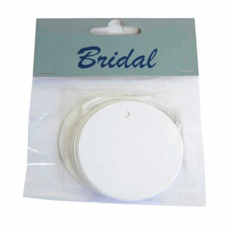 White round tags are perfect for attaching to wedding favours or gifts. Embellish them or use them plain.Pack of 10